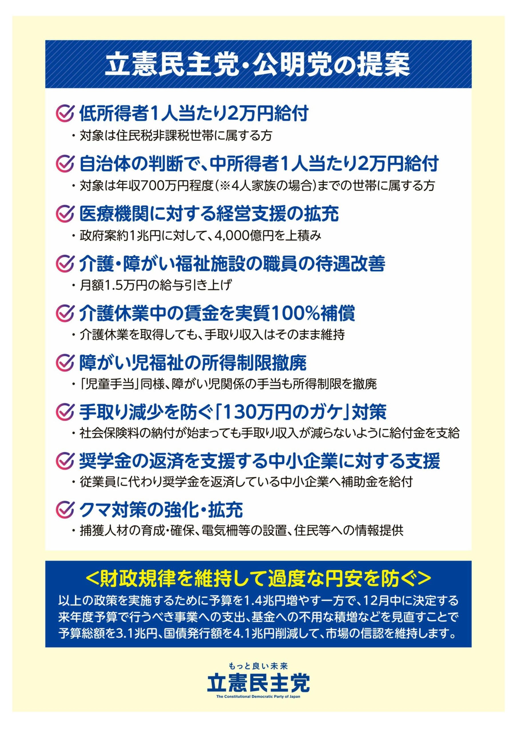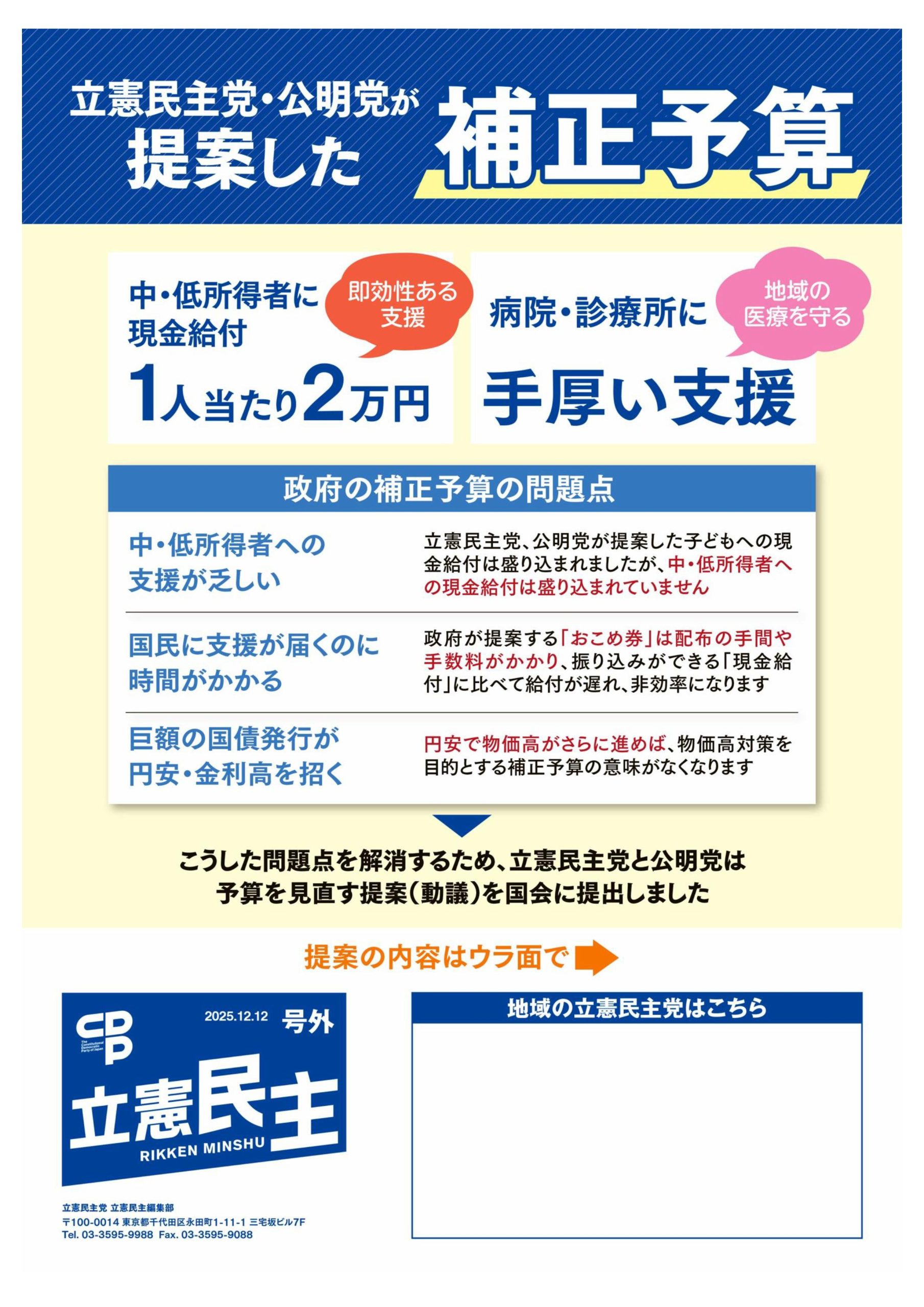 広報誌号外「立憲民主党・公明党が提案した補正予算」